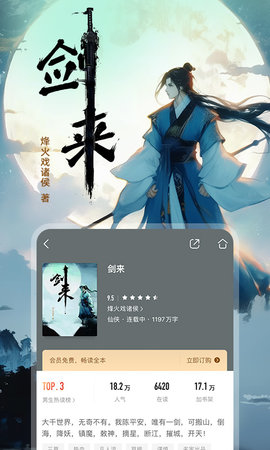 在霸榜好书中,逍遥四公子是一部名家修果历史佳作,讲述了少年扬刀,诛奸平夷,名动大玄的故事。还有许多热门网文作品如万相之王、遮天、沧元图、我有一剑、吞噬星空等等。长相思2由杨紫主演,大神桐华创作的虐恋仙侠力作,权力纷争再度升级,爱恨纠葛,情感纷乱。新人免费观看爆款短剧和热门小说,如剑道第一仙由萧瑾瑜创作的玄幻力作,讲述了一个万古人间一剑修的故事,诸天之上第一仙的传奇。
