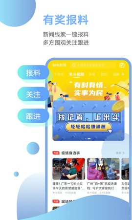 触电新闻还是广东新闻联播的官方互联网宣传阵地,用户可以通过软件观看广东广电旗下所有电视、广播节目,地方台频道,独家电视栏目即点即看,精彩回放不容错过。触电新闻还汇集了全网的千万短视频和优质现场直播内容,用户可以随时随地浏览热点头条现场,与千万网友进行实时互动。用户还可以通过一键报料功能提供新闻线索,触电新闻将追踪调查并解决用户的疑虑,优质、热门、真实的报料有机会成为媒体报道的内容来源,并有机会获得奖金。