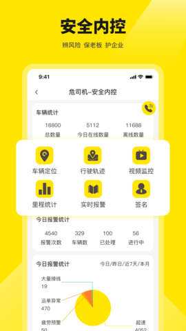危司机的安全内控系统采用大数据安全管理、人工智能和物联网技术,为企业提供实时共享监控服务,推动道路运输企业风险管理和安全生产服务。运输企业可以更专注于运输本身。安全内控系统严格遵守国家安全相关法律法规,为运输企业提供全程动态监控和静态安全管理,全面协助运输企业履行安全生产主体责任。省时、省力、省心,辨别风险、保护老板、护卫企业,精准定位货物运输路线,时刻掌握司机的运输状况。