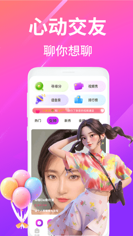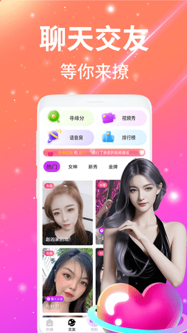 夜沁聊天视频交友是一款集恋爱、社交、找对象、约会功能于一体的社交应用。你可以与陌生人进行视频聊天,结识高颜值的小姐姐,还可以找到与你同城、兴趣相投的女生,畅聊各种话题。