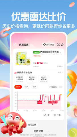一淘还推出了支付宝小程序一淘特卖,用户可以在支付宝中直接使用一淘的功能。产品特色包括优惠雷达和比价工具,帮助用户避免购买昂贵的商品,发现更多的优惠信息。一淘汇聚了淘宝、天猫的海量商品,用户可以在一处找到所有商品的优惠信息,还能叠加一淘专享的各类优惠。通过一淘,用户可以更加便捷地享受购物的乐趣,省下更多的金钱。
