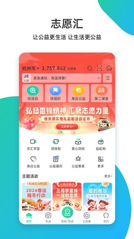 志愿汇的功能包括三个主要方面:加组织、找活动和享福利。通过加组织功能,用户可以开放展示全国各类公益组织,精准筛选符合自己需求和兴趣的志愿服务活动,并就近就便报名参与。找活动功能则实时推荐精选活动,让用户可以更加方便地参与志愿活动。而享福利功能则提供权益激励和专属服务,综合应用云计算、大数据、区块链等互联网技术,真实记录用户的志愿服务时长,让公益更融入生活,让生活更充满公益。
