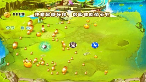1、游戏中,玩家需要操作老奶奶不断地消灭死神,每一关都有不同数量和类型的敌人等待着你来挑战。
