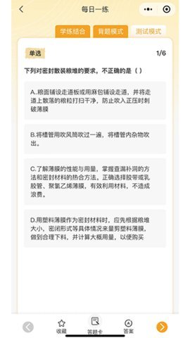 粮友考试通APP还提供了章节训练、模拟测试、笔记练习、错题刷练等多种学习方式,帮助用户全面掌握考试要点。海量题库资源涵盖各类考试的真题和模拟题,确保练习的针对性和实效性。用户可以随时随地通过手机进行学习,打破时间和空间的限制。