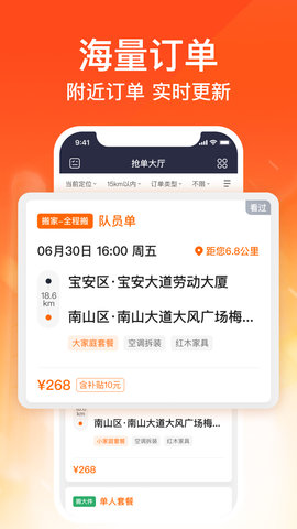 货拉拉平台拥有840万月活用户,订单接踵不断。通过线上接单的方式,搬家小哥们可以更轻松自由地挣钱,告别四处揽活的烦恼。操作更简单,流程更规范,减少矛盾纠纷,使工作更加顺畅。