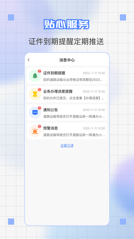 道运通通过整合各类道路运输政务服务,为用户提供了一站式的便民服务平台。用户可以通过道运通APP和道路运政一网通办微信小程序轻松办理各类道路运输相关业务,节省了大量的时间和精力。希望道运通能够继续完善服务,为用户提供更加便捷高效的政务服务体验。