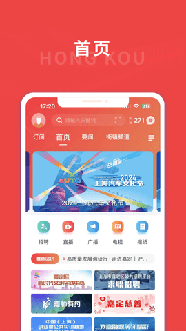 上海嘉定是一款地方新闻综合服务应用,是嘉定区融媒体中心全新打造的融媒体客户端产品。软件以新闻+政务+服务为定位,深度融合广播电视、报刊、新媒体等资源,为用户提供全方位的信息服务。在上海嘉定融媒体客户端上,不仅可以获取最新的新闻资讯,还可以享受便民服务,涵盖生活、教育、交通等多个方面。