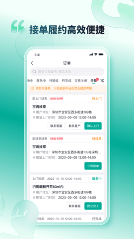 除了学习园地,U服到家接单版还提供了丰富的派单资源。商家可以通过这款应用获得更多的订单资源,从而提升自己的业务量和收入。通过接受更多订单,商家可以扩大自己的客户群体,提高自己的知名度和口碑,进而吸引更多客户的关注和信赖。