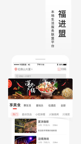福进盟是一款综合商城和本地宝应用,为消费者提供一站式生活服务。平台以客户为中心,为用户提供丰富多样的美食、旅游、酒店等吃喝玩乐服务。