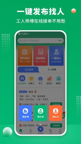 装修师傅接单App为装修工人师傅提供了便捷的接单找活平台,也让业主在装修过程中能够轻松找到合适的装修师傅工人。通过省去大量的中间环节,让装修师傅工人找活更为简单快捷,满足了广大装修师傅工人的需求,成为他们即时接单的靠谱平台。软件也为装修公司、装修设计师、装修业务员以及装修工人提供了一个拓客的好帮手,为他们提供了更多的接单机会和业务发展空间。