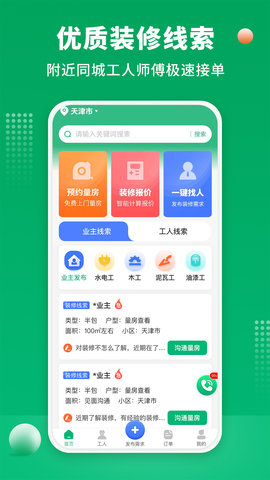 装修师傅接单App是一款极具实用性和便利性的生活应用,通过软件,用户可以轻松找到符合自身需求的装修信息,让装修师傅工人和业主能够更加便捷地对接,实现快速找活。软件也为装修行业的相关从业者提供了更多的接单机会和业务发展空间,成为他们工作中不可或缺的好帮手。