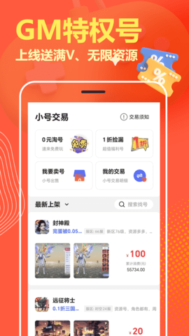折扣号手游是一款游戏交易应用,为广大玩家提供了丰富多样的游戏资源和特权账号。玩家可以轻松注册并领取万元红包的新人礼包,每日更有648充值卡等着你来领取。折扣号手游拥有海量账号,涵盖了千款1折手游GM特权账号,包括了当下热门手游如新斗罗大陆、新盗墓笔记、少年三国志2、少年西游记2、三国云梦录、火影忍者手游、航海王等等。