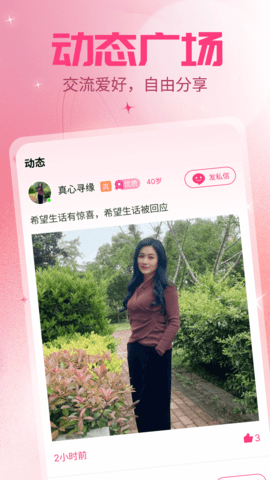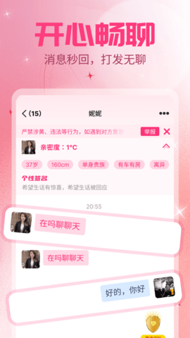夕阳红的特色之一是同城/附近人功能,通过智能推荐系统,用户可以方便地找到身边的潜在约会对象。夕阳红平台严格审核用户身份,只有经过真人认证的用户才能进行聊天,确保信息的真实可靠性。与其他交友应用不同,夕阳红没有机器人陪聊,用户可以放心地与真实的人交流,避免虚假用户的困扰。