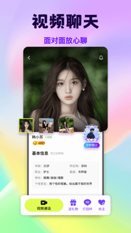 甜花视频聊天是一款专为用户提供语音视频交友功能的应用。通过软件,用户可以实时与心仪的异性进行视频互动,体验真实有趣的交流,让网络世界变得更加生动有趣。甜花视频聊天还提供了在线精彩推荐功能,用户只需一键定位便可快速匹配附近的在线异性,结识有趣的灵魂,让交友变得更加便捷和高效。