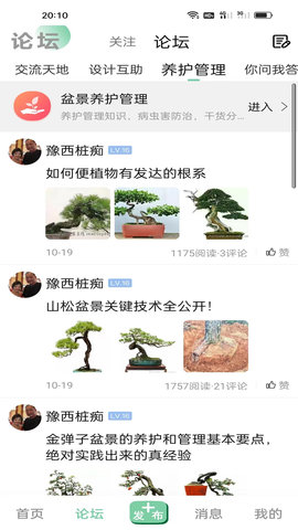 千盆是一款专为盆景爱好者打造的社交应用,为全国范围内的盆景爱好者提供一个交流、学习、设计和养护盆景的平台。作为盆景艺术在线手机客户端,千盆APP汇集了大量盆景爱好者,他们可以在这里分享自己的盆景作品,交流养护经验,学习盆景造型技巧,获取盆景病虫害防治的方法等。
