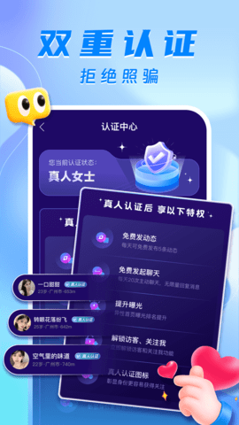 可见官方版同城交友是一个让人感到温馨、亲密的交友平台,让用户可以在这里找到志同道合的朋友,分享生活中的点点滴滴,体验真实而有趣的交友之旅。无论是想要结识新朋友,还是寻找另一半,可见同城交友都能帮助你实现心中的交友梦想。赶快加入我们,开启属于你的同城交友之旅吧!
