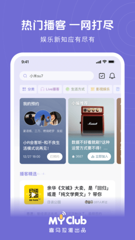 MyClub是一款独特的应用,的MyClub 播客吧是专为播客爱好者而设计的新一代播客社区平台。在这个平台上,用户不仅可以收听点播节目,还可以参与实时播客直播,与主播和其他同好进行更高频率、更亲密的互动。