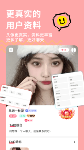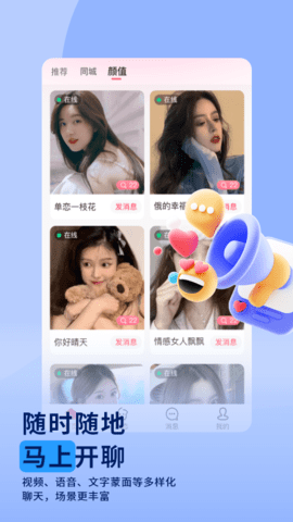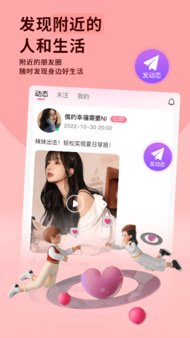 久伴网集附近交友、语音聊天、视频通话等多种功能于一体。特别是在附近交友功能中,久伴网优先推荐附近的异性用户,帮助拉近彼此的距离感。用户可以在久伴网上不用加好友,直接在线约会交友找对象。