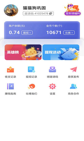 淘兼职也提供了众人帮互助赚的机会。用户可以邀请好友一起加入淘兼职,通过邀请越多,赚钱越快的方式,实现众人帮助你赚钱的效果。新用户注册还能够获得红包奖励,随时可提现,轻松赚取零花钱。每日签到、观看视频也可以获得金币奖励和现金奖励,让用户实现天天赚钱的目标。