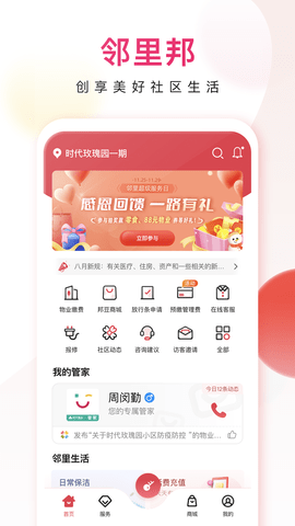 邻里邦成为居民们的必备社区生活服务软件。居民可以方便快捷地进行物业缴费、智能门禁管理、投诉报修等操作。邻里邦也考虑到了居民的其他生活需求,如旅行出游、话费充值、生活购物等,都可以在应用中得到充分满足。