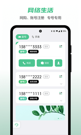 除了商务联系专用小号外,用户还可以使用和多号作为临时联系专用小号。可以将副号留给快递信息,只接收快递相关的电话,避免骚扰电话。用户还可以将副号用于账号注册,用于客户、同事联系,将生活和工作分开,实现专号专用,工作生活无缝切换。