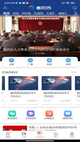 看陇西是一款地方新闻综合服务应用,为用户提供全方位的生活资讯、政务信息和便民服务。看陇西客户端是由陇西县融媒体中心精心打造的本地APP,其核心理念是生活+政务+服务,为用户打造一个集生活阅读、直播点播、政务服务和便民服务于一体的综合信息平台。