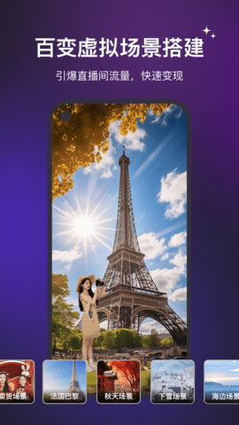 直播魔盒是一款专业的绿幕虚拟直播工具,也是一款功能强大的图片美化应用,让用户能够轻松拍摄创意特效短视频。软件支持多个主流平台,包括抖音、快手、淘宝、拼多多、微信视频号、微信小程序等,用户可以一键开播,实现跨平台直播。