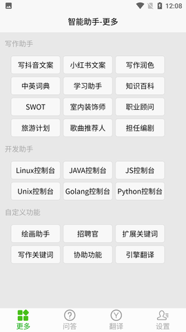 智能助手是一款功能强大的绘画涂鸦应用,它不仅仅是一个日常智能工具,还集成了多种实用功能,为用户提供全方位的写作、绘图和翻译服务。在写作方面,智能助手可以为用户提供写作建议,支持排版功能,还有各种创意模板可供选择,帮助用户在写作过程中更加得心应手。而在绘图方面,用户可以通过智能助手获得绘图创意,让用户的创作更加生动有趣。智能助手还提供多种语言的翻译服务,用户可以轻松实现多种语言之间的互译,方便用户在国际交流中的应用。