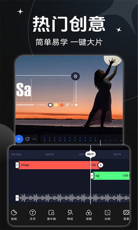 AE视频剪辑是一款专业的视频剪辑制作APP,内置丰富的剪辑制作小工具,如视频分割、变速、倒放、添加贴纸、文字、背景等。用户还可以通过一键去除视频水印,支持导出高清格式的视频,让用户能够轻松制作出精美的视频作品。无论是日常生活中的记录,还是专业视频制作,AE视频剪辑都能满足用户的各种需求,是一款非常实用的视频剪辑工具。