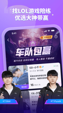 比心是一款集代练陪玩和知识社区于一体的应用。作为明星战队官方指定游戏陪练平台,比心APP吸引了众多明星战队的入驻,包括知名的英雄联盟战队BLG和KT。这些明星战队的加入不仅提升了比心APP的知名度,也为用户提供了更多优质的游戏陪练服务。