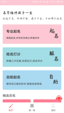 在【看一看】板块中,软件精心整理编写了宝妈关心的起名知识、起名百科、备孕知识和婴儿护理等内容,让您更加了解宝宝的世界。【专业起名软件】和【起名字典】功能让您可以查汉字的五行属性、笔画数,并推荐适用于起名的好字。