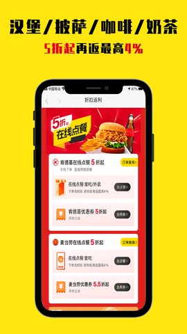 在使用折扣返利应用时,用户只需下单付款,即可获得超高的佣金返利。无论是购买生活饮食类商品,如肯德基、麦当劳、必胜客、瑞幸咖啡、星巴克、华莱士、德克士等,还是在电商平台购物,用户都可以享受到百分比返利,返利金额可达付款金额的90%,且无需达到提现门槛即可提现。