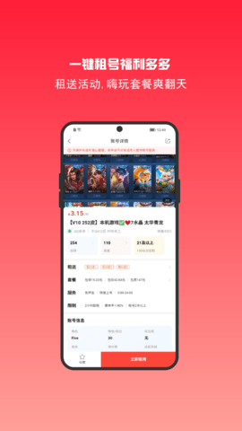 租号秀是一个值得信赖的高端账号交易平台应用,为玩家提供了专业、快捷、实惠和安全的账号服务。无论您是想要体验高端游戏,还是想要获得更多乐趣,租号秀都能满足您的需求。选择租号秀,让您的游戏体验更上一层楼!
