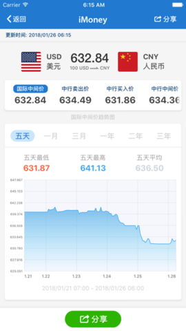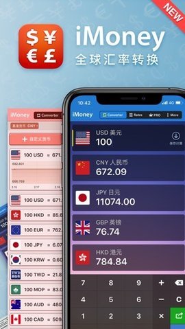 全球汇率转换软件又称为iMoney全球汇率转换,是Clover团队推出的一款汇率换算工具。iMoney实时汇率换算支持170多种常用货币,并提供简单易懂的操作体验。用户可以选择5种货币进行兑换,并查看历史汇率图表,包括五天、一月、三月、一年、三年和五年的历史汇率数据。