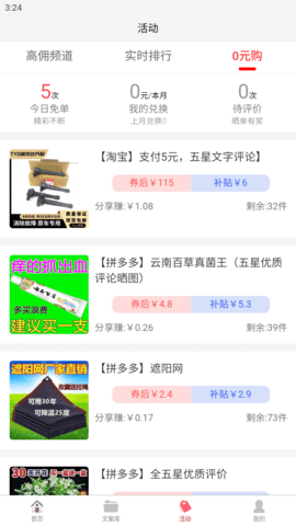 除了提供优惠券服务,千单库还推出了0元购活动,每日推出补贴商品,补贴金额不低于商品实际支付金额,用户不仅可以免费获得心仪商品,还能享受平台的补贴金额,实现双重优惠。用户还可以通过分享好友获得收益,享受更多的购物优惠,让购物不仅省钱还能赚钱。