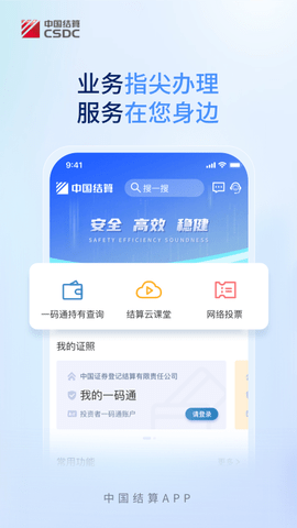 中国结算是中国证券登记结算有限责任公司(简称中国结算)推出的一款股票应用,为证券市场投资者和发行人提供便捷的移动服务。用户可以通过中国结算APP进行在线业务办理、各类信息查询和客户服务等功能。