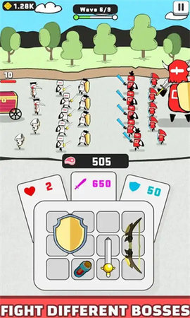 游戏中还提供了MOD功能,玩家可以根据敌人的进攻节奏和类型,调整队伍配置,针对不同敌人采取相应对策。每一波敌人都会带来更强大的挑战,随着游戏的进行,挑战也会逐渐加剧。最终一波将让玩家对抗一个巨大的敌方首领,他的失败将决定你的黄金宝箱的命运。但要取得胜利并非易事,玩家需要仔细升级战士,提高他们的能力和装备,以有机会对抗不断增长的威胁。