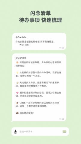 麦小记提供了多种记录方式,包括手账、语音、文字、拼图等,满足不同用户的记录需求。用户可以轻松记录生活中的美好时刻,分享给朋友,或者私密保存。麦小记还提供了清单管理功能,帮助用户高效管理日常任务,提升生活效率。