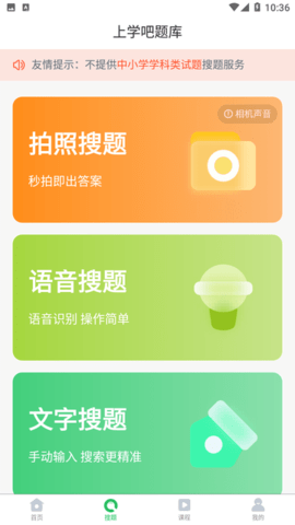 除了支持文字输入,上学吧题库APP还支持语音搜题和拍照搜题功能,用户可以通过多种方式获取答案,节省解题时间。APP中还有专门的考试资讯栏目,帮助用户随时随地掌握最新的考试动态,及时调整复习计划。通过这些功能,用户不仅方便使用,还能提高使用效率,解决答题燃眉之急。上学吧题库APP为用户提供全方位的学习支持,让用户更轻松地备考。