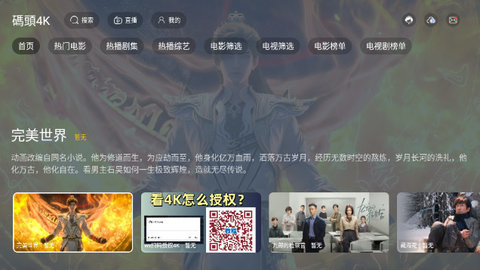 用户可以根据个人喜好筛选影视内容,快捷搜索全网影视资源。应用提供了精选推荐,实时推荐最新最热门的影视作品。用户可以选择想要缓存的视频或电视剧集数,查看缓存进度并享受海量的正版免费视频资源。分类详尽,让用户更轻松地找到自己喜欢的影视作品。码头4K电视版为用户提供了丰富多彩的视频内容,满足不同用户的观影需求,让用户尽情享受精彩的影视世界。