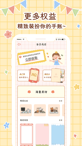 丫丫手帐的创作灵感来源于一个可爱善良的小城女生,她的梦想是成为一个优秀的文学家或画家,通过图文作品赢得更多人的喜爱。作为手帐排版得力助手,丫丫手帐提供了丰富的手帐画笔、胶带、荧光笔和图形笔,支持用户做出更好排版的手账和笔记。花样字体、清新风格的笔记本和便签本让丫丫手帐成为手帐控的聚集地,用户可以自由运用海量素材,创意排版,甚至将手帐打印成书。