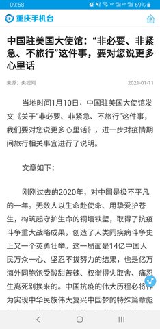 重庆手机台App是重庆广电数字传媒股份有限公司倾力打造的一款地方资讯应用,为用户提供全方位的本地资讯服务。通过重庆手机台,用户可以轻松获取重庆的新闻资讯、影视文化、生活服务等内容,让用户在移动互联网时代畅享信息的便利。重庆手机台将继续不断优化服务,为用户带来更好的使用体验,成为用户生活中不可或缺的信息助手。
