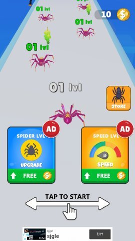 蜘蛛进化跑酷是一款休闲跑酷闯关游戏,拥有海量关卡设计和逐渐增加的难度等级,给玩家带来全新的跑酷快感。玩家需要控制蜘蛛在充满障碍和陷阱的关卡中不断前进,灵活移动躲避各种障碍,收集资源提高蜘蛛的等级和能力,快速通关。玩家将体验到蜘蛛从幼小到强大的成长过程,探索一个充满奇幻元素的异世界环境。