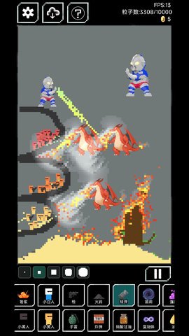 3、游戏中共有水、火、冰火、火药、人等元素,加上鸟、蜜蜂、蝗虫等生物,以及花、树等植物总计40种以上的各式各样的元素。
