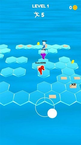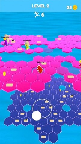 3、每局游戏中会有数名玩家,各自为战,站在由六边形铺成的平台上。