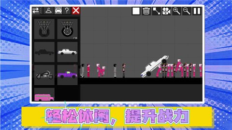 1、玩家需要通过各种方式来完成关卡,例如用汽车打击敌人、扔火箭、控制、重力、龙卷风、蹦床等等。