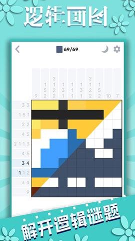 逻辑画图是一款非常有趣的游戏。玩家需要根据两个方向排列的数字去揭开画板上的隐藏图片。这款游戏有150个关卡,每个关卡的图片都不一样,想办法组成完整的拼图,玩家们还将解锁更多精彩有趣的内容,这样可以给玩家们带来源源不断的新鲜感。