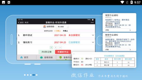 2、使用外语通教师版,教师可以方便地进行班级学情的了解和作业的布置。