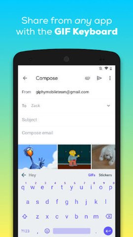 3、用户可以从GIPHY的整个内容库中搜索要发送的完美GIF、剪辑或贴纸。