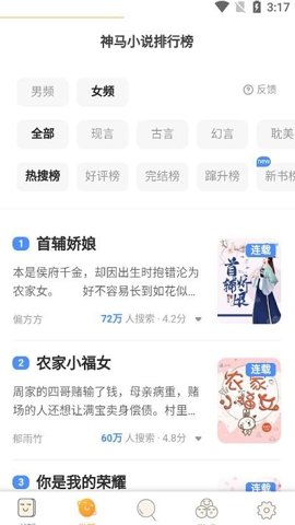 1、此外一阅阅读还覆盖了超级丰富多样的资源,包括各种小说和书籍,用户可以通过书城来实现排行榜和搜索功能,所有的书都是分类的,让用户可以很容易地找到自己想要的小说。